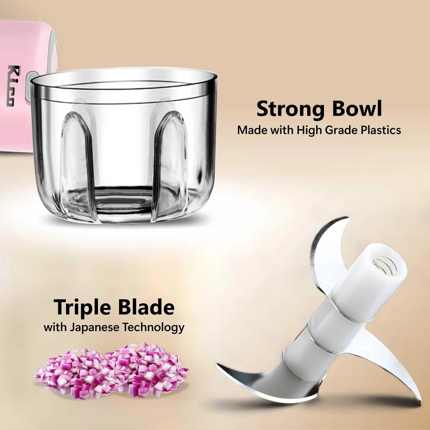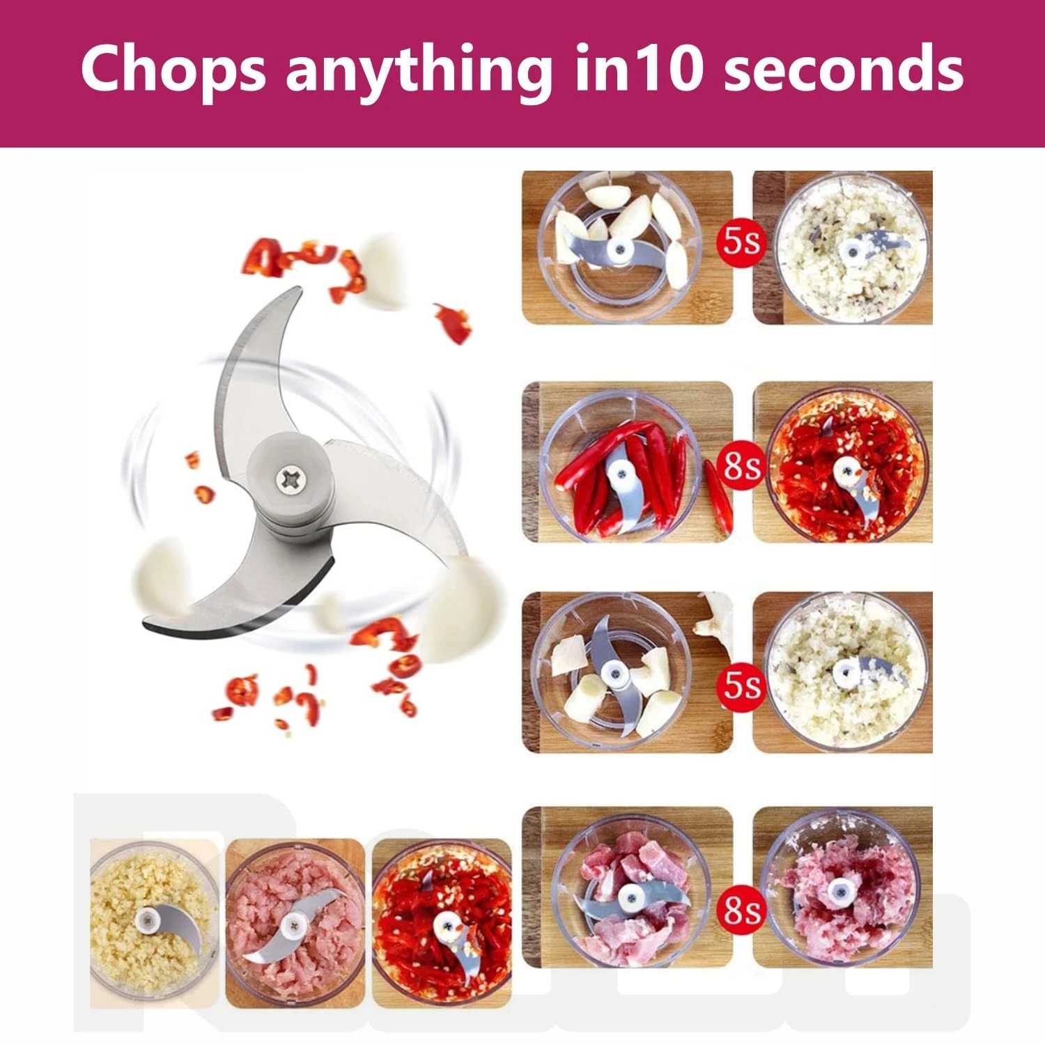 Just manually put food or ingredients into the 30W powerful vegetable chopper, lock the lid, and chop food quickly with one button, garlic chopper with 3 stainless steel, only needs 15s can automatic and evenly chop/mince/blend a wide variety of foods, saving you time and freeing your hands.