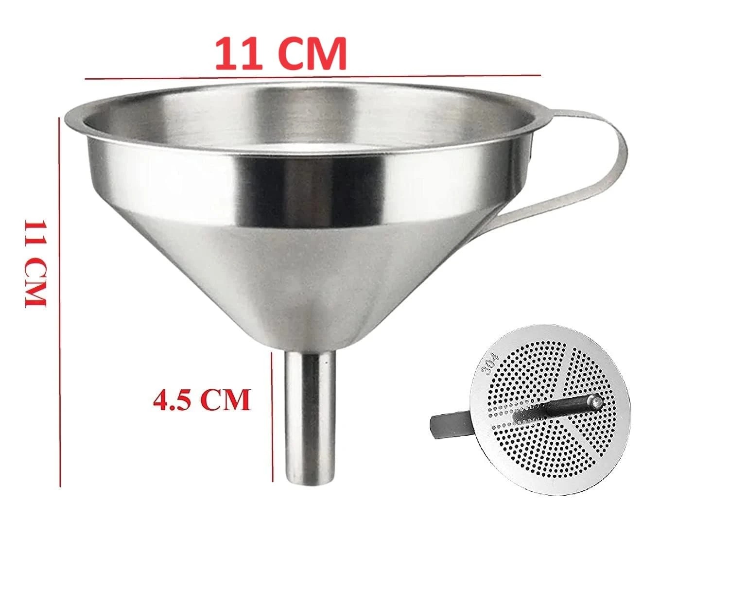 Multipurpose Stainless Steel Funnel with Detachable Strainer, 11 CM, Silver