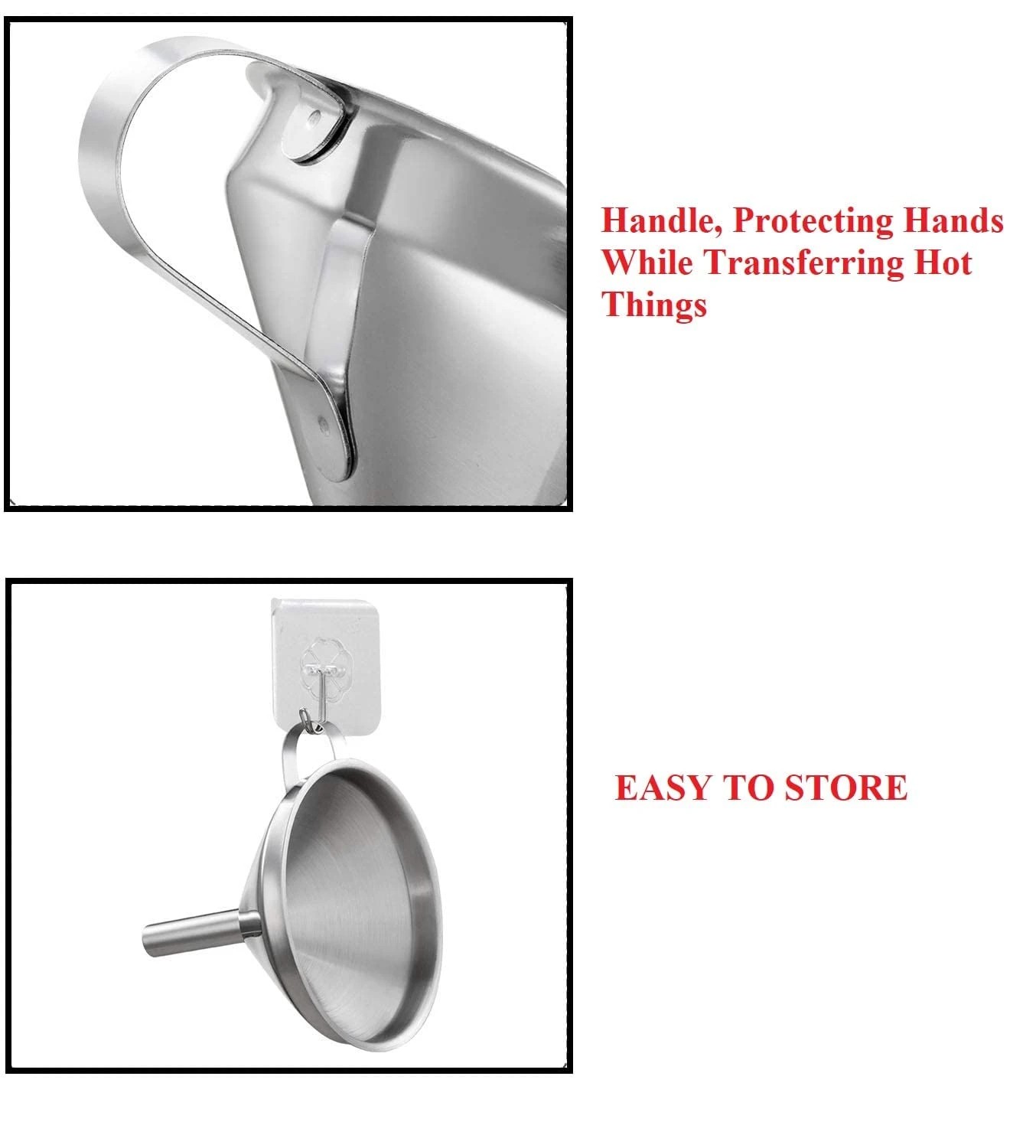 • Color - Silver ; Material - Made from high-quality stainless steel having thickness of 2mm for optimal longevity, curved funnel bottom for easy air pass during filling