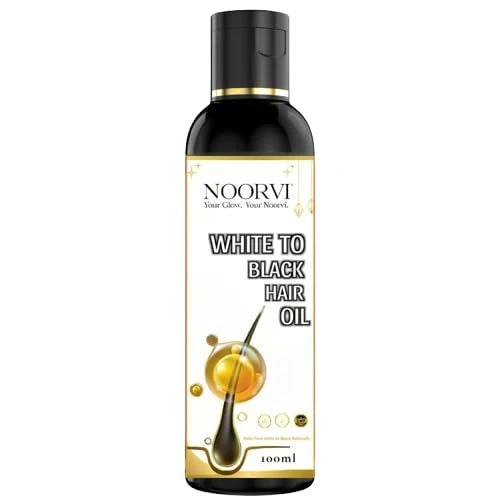NOORVI White to Black Hair Oil, Natural Ayurvedic Blend with Bhringraj, Coconut, Olive, Castor Oil for Grey Hair Treatment, 100ml (Pack of 1)