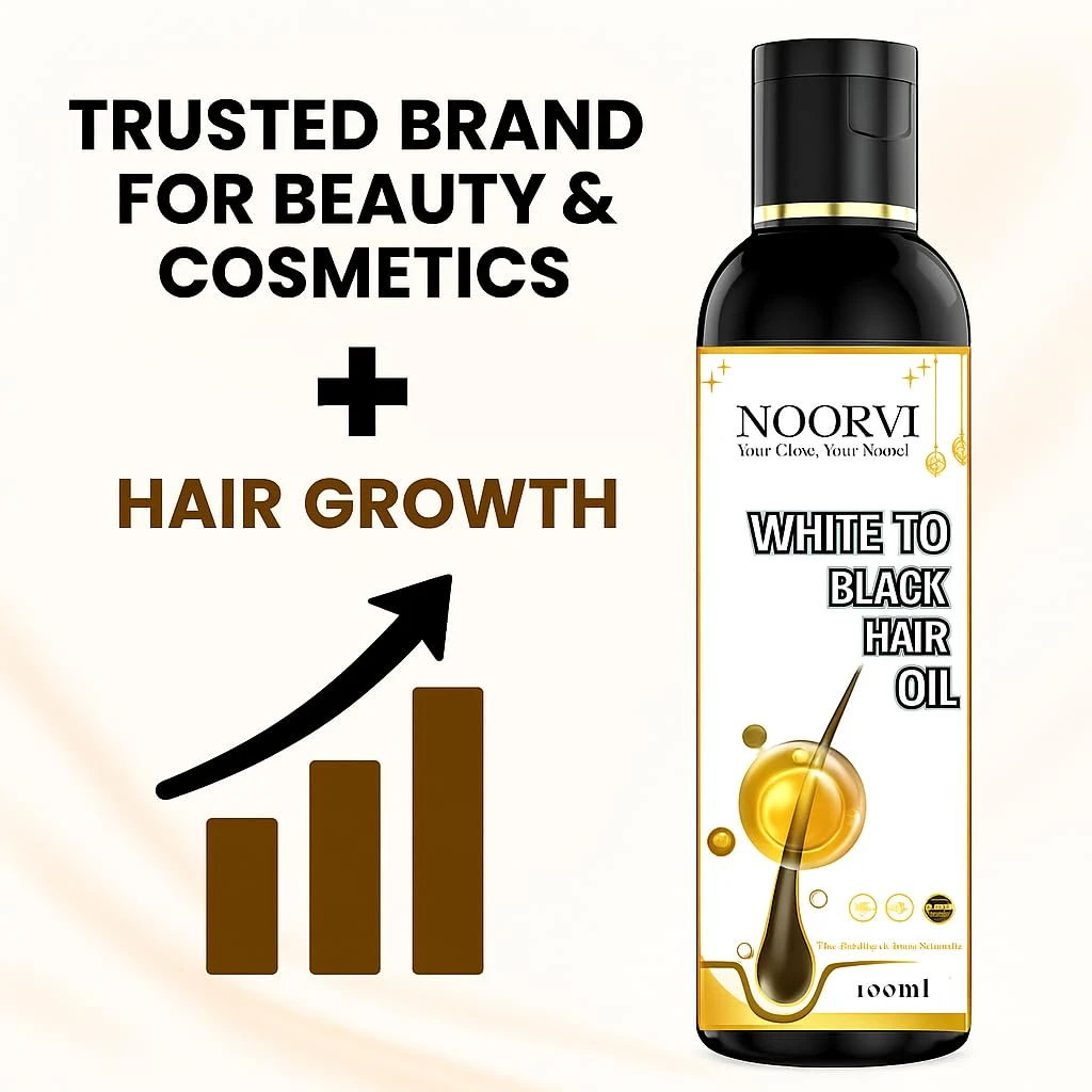 NOORVI White to Black Hair Oil, Natural Ayurvedic Blend with Bhringraj, Coconut, Olive, Castor Oil for Grey Hair Treatment, 100ml.