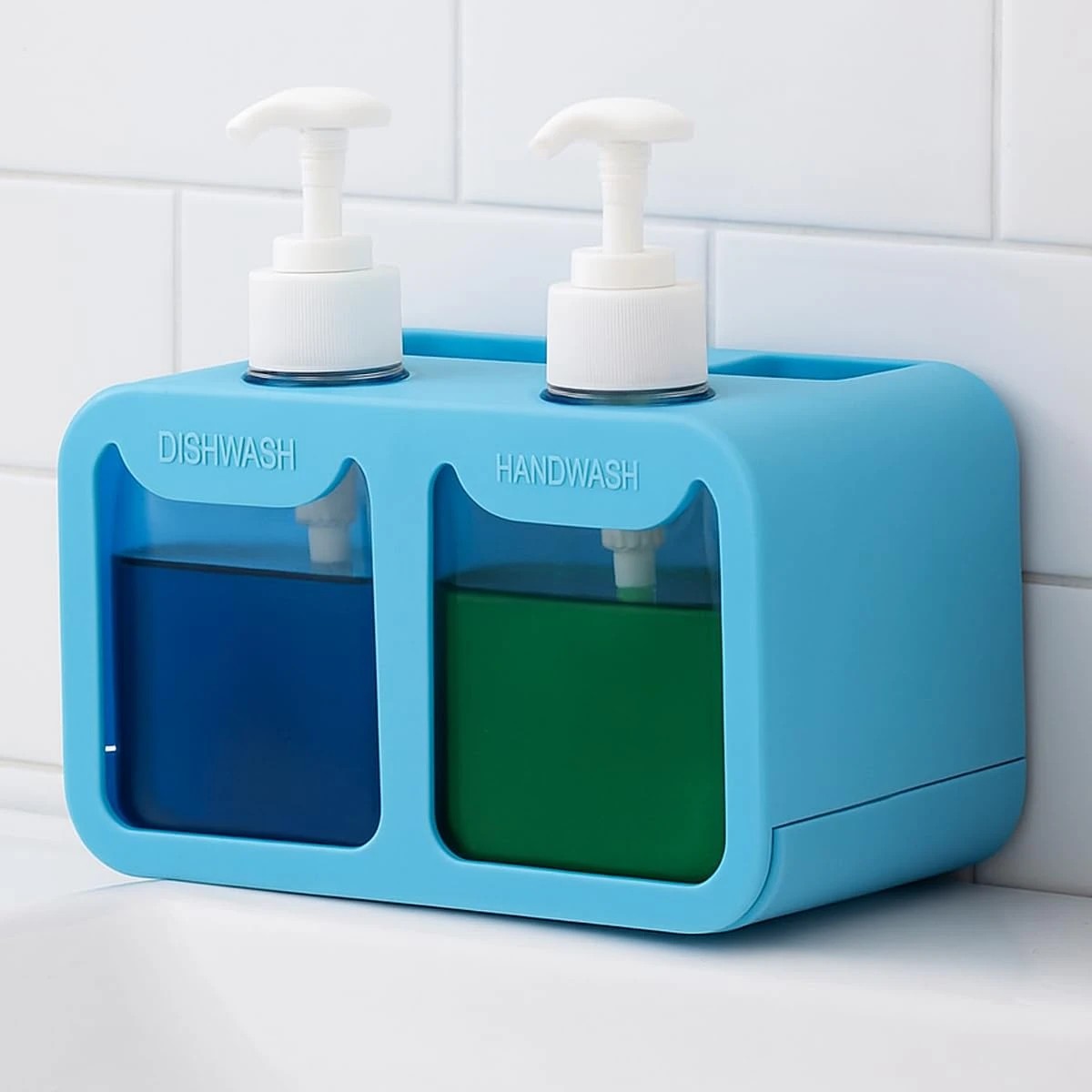 Outdoor Living Twin Designe Liquid Soap Dispenser, 300ml, Multipurpose Refillable Plastic Pump for Hand Wash, Dish Wash, Shampoo, Kitchen, Bathroom, and Household Use Color Blue