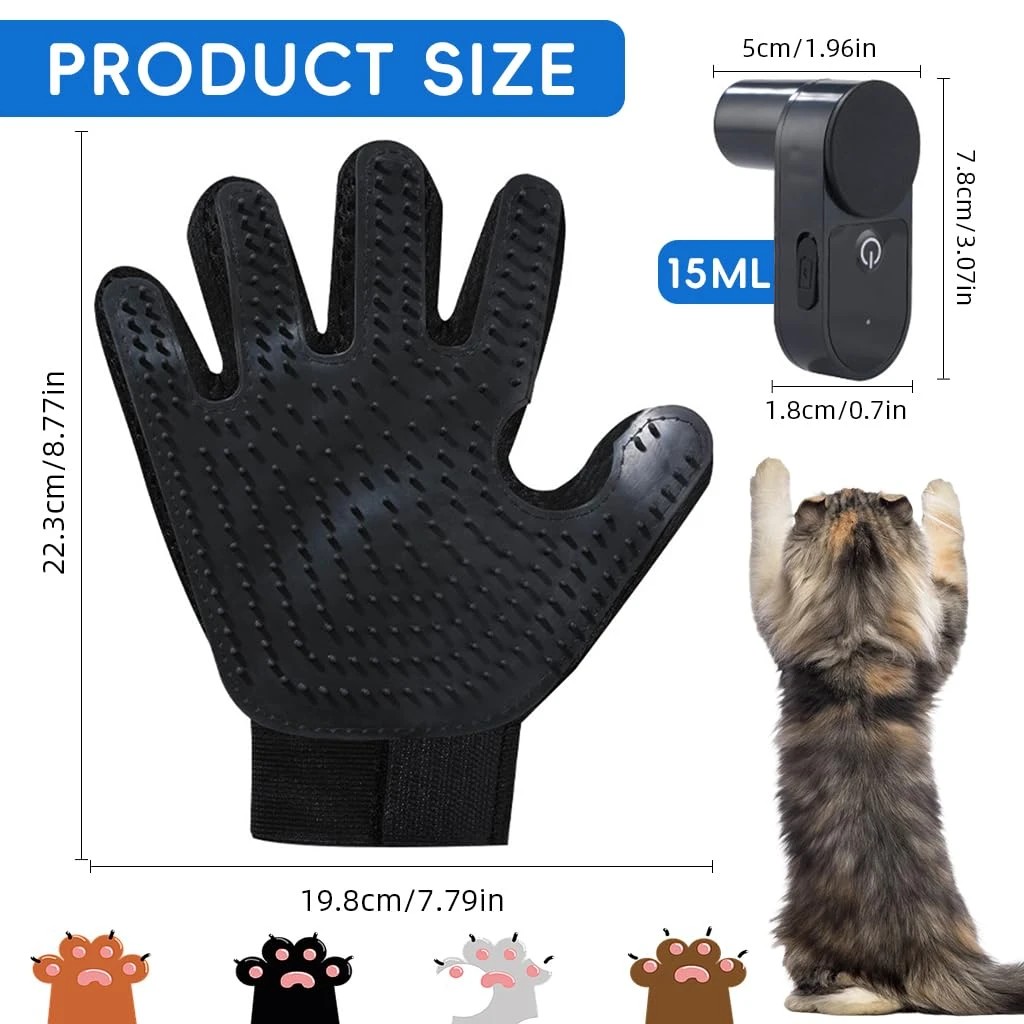 Pet Grooming Glove & Water Sprayer, Deshedding & Massaging Mitt for Cats & Dogs Wet/Dry Use with Silicone Bristles Fur Remover for Bathing & Shedding Control