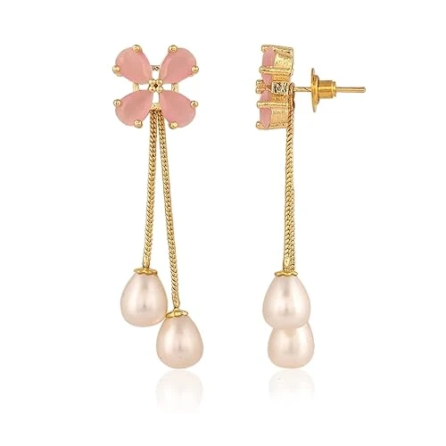 Pink Color Gold Plated Sparkling Colors Pearl Dangle & Drop Earrings Tops Women/Girls