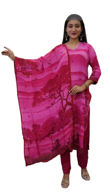 Elegant Design: The kurta is crafted with a rich purple hue that exudes sophistication and charm, making it a standout piece for any occasion. Comfortable Fabric: Made from high-quality, breathable fabric, this kurta set ensures comfort throughout the day, allowing you to move with ease and confidence. Stylish Dupatta: The printed dupatta adds a touch of flair and complements the kurta perfectly, enhancing the overall look with its intricate patterns. Perfect Fit: Available in various sizes, the kurta set is tailored to provide a flattering fit for different body types, ensuring you look your best.