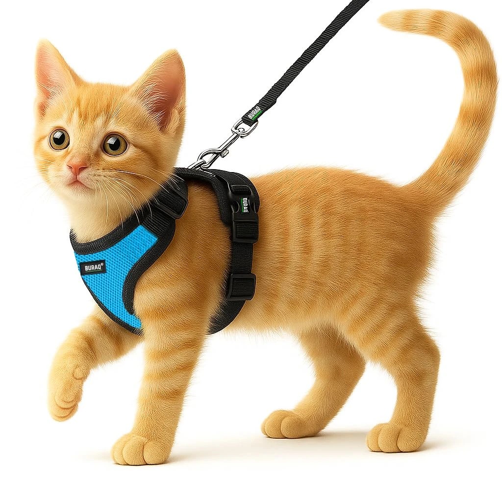 Pull Cat Harness with Leash, Escape Proof, Ultra-Light Weight, Air Mesh Fabric, Aesthetic Design Adjustable Cat Leash with Harness (XXS - Blue)