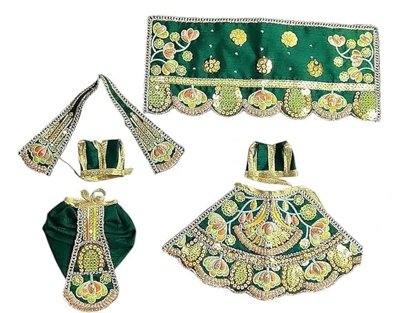 Radha Krishna Dress | Poshak for Yugal Jodi | Radhe Krishna Ji Poshak with Heavy Work (Green, Dress Size 5 Inches for 8 & 9 Inches Murti)