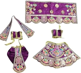 Radha Krishna Dress | Poshak for Yugal Jodi | Radhe Krishna Ji Poshak with Heavy Work (Purple, Dress Size 4 Inch 1 Pair