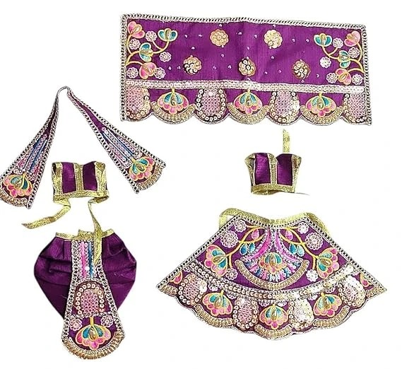 Radha Krishna Dress | Poshak for Yugal Jodi | Radhe Krishna Ji Poshak with Heavy Work (Purple, Dress Size 5 Inches for 8 & 9 Inches Murti)