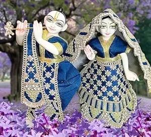 Radha Krishna Dress | Poshak for Yugal Jodi | Radhe Krishna Ji Poshak with Heavy Work (Blue, Dress Size 5 Inches for 8 & 9 Inches Murti) 1 Pair