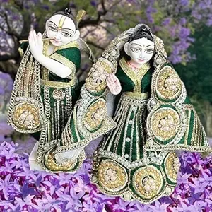 Radha Krishna Dress | Poshak for Yugal Jodi | Radhe Krishna Ji Poshak with Heavy Work (Green, Dress Size 5 Inches for 8 & 9 Inches Murti) 1 Pair