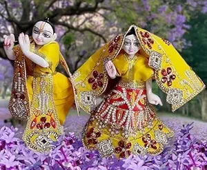 Radha Krishna Dress | Poshak for Yugal Jodi | Radhe Krishna Ji Poshak with Heavy Work (Yellow, Dress Size 5 Inches for 8 & 9 Inches Murti) 1 Pair