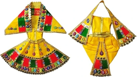 Radha Krishna Dress | Poshak for Yugal Jodi | Radhe Krishna Ji Poshak with Heavy Work (Yellow, Dress Size 5 Inches for 8 & 9 Inches Murti) 1 Pair