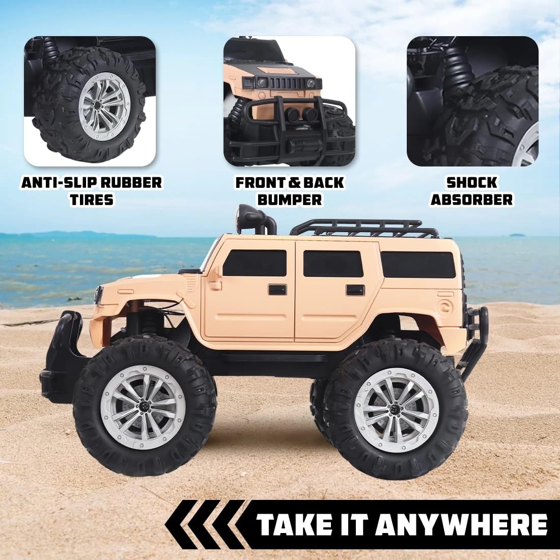 Rechargeable Remote Control Car Toy for Boys | Monster Truck RC Car with 4 Headlight Modes | Lithium Battery | C-Type Charging | Remote Car for Kids Adult | Made in India - Beige