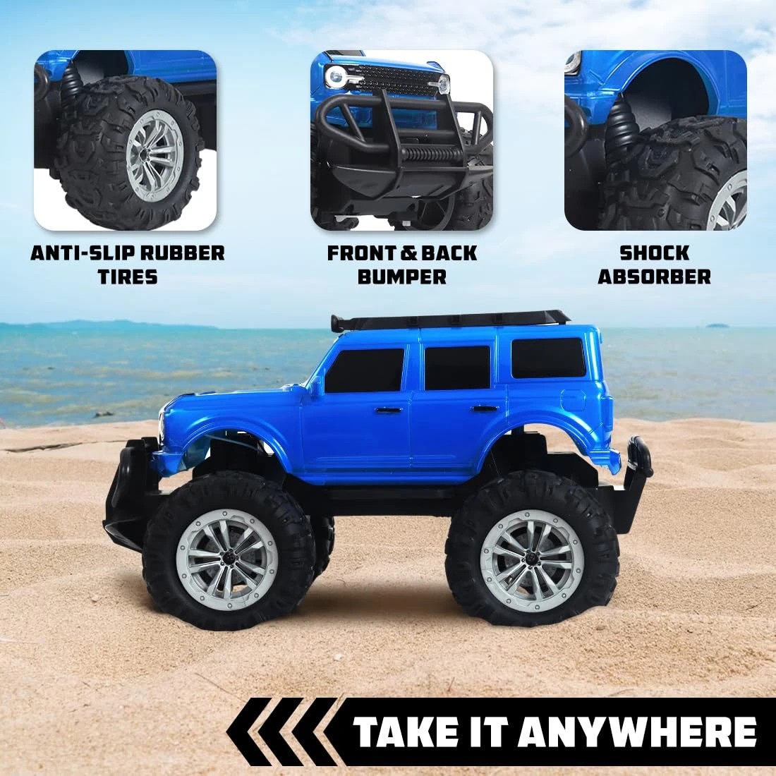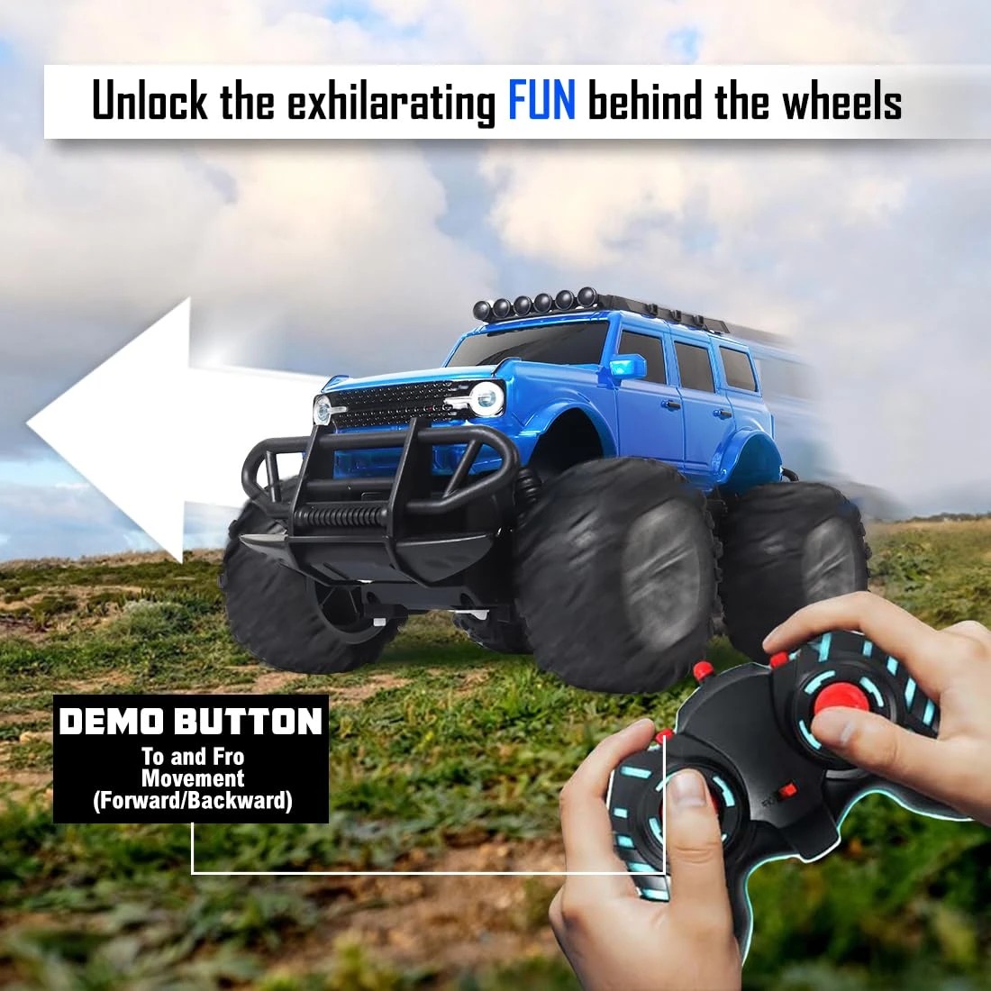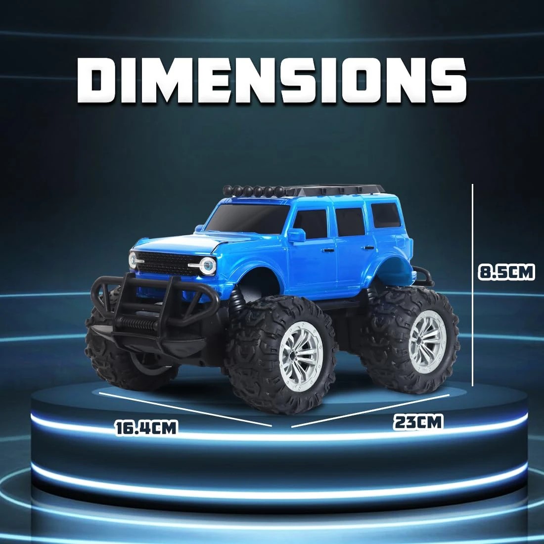 Rechargeable Remote Control Car Toy for Boys | Monster Truck RC Car with 4 Headlight Modes | Lithium Battery | C-Type Charging | Remote Car for Kids Adult | Made in India - Blue