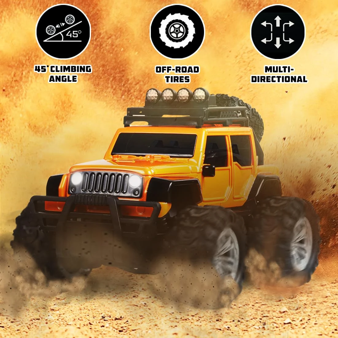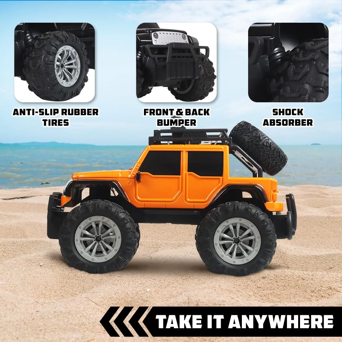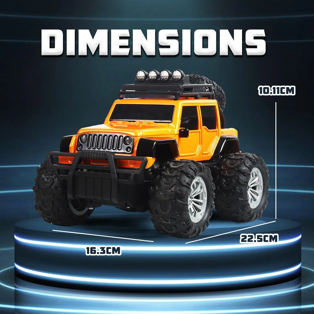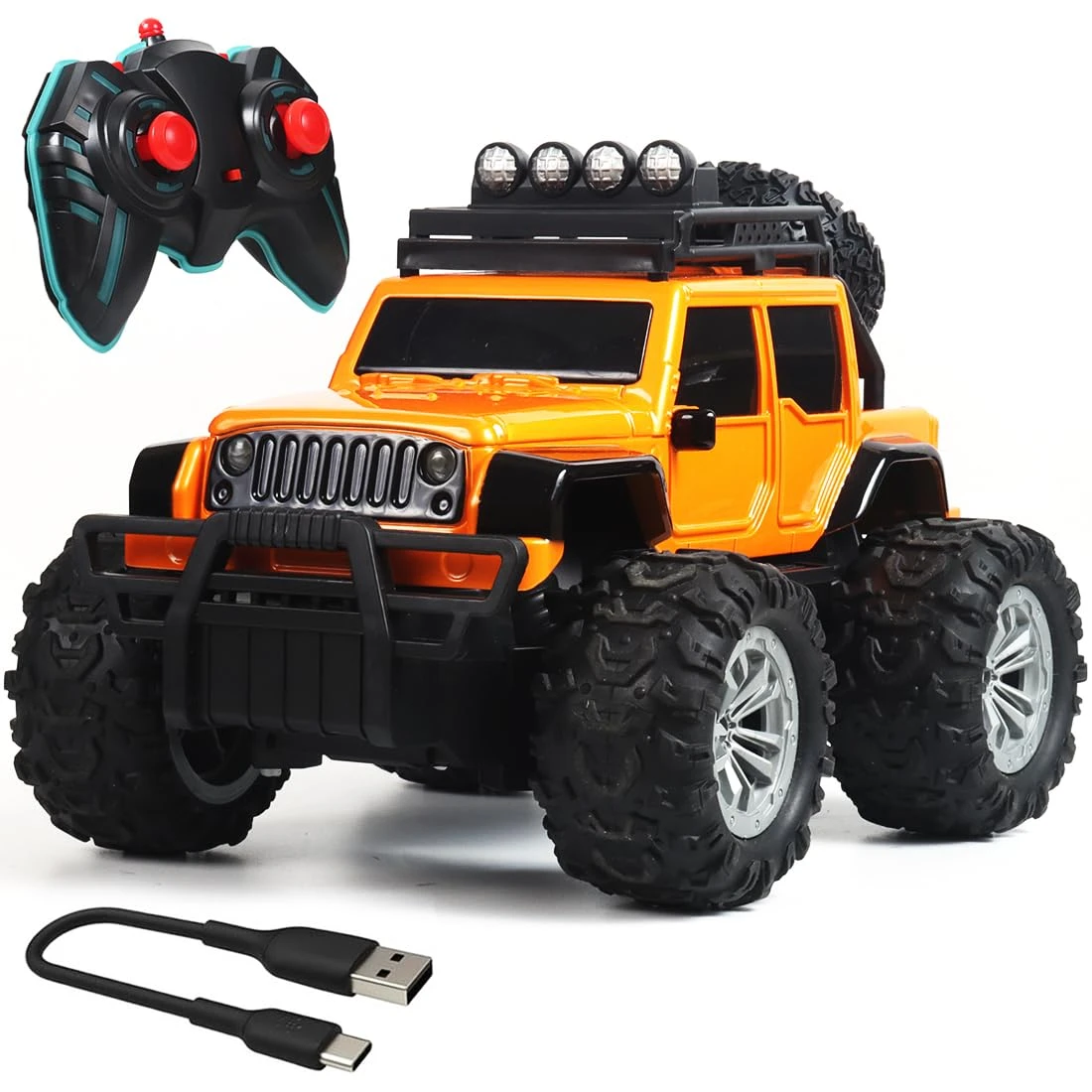 Rechargeable Remote Control Car Toy for Boys | Monster Truck RC Car with 4 Headlight Modes | Lithium Battery | C-Type Charging | Remote Car for Kids Adult | Made in India - Orange.