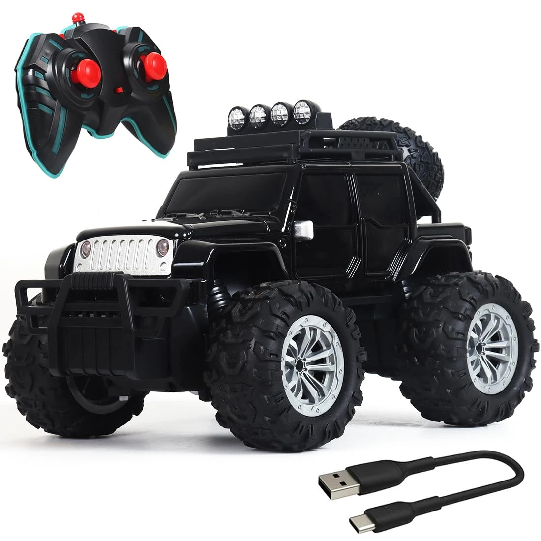 Rechargeable Remote Control Car Toy for Boys | Monster Truck RC Car with 4 Headlight Modes | Lithium Battery | C-Type Charging | Remote Car for Kids Adult | Made in India - Black