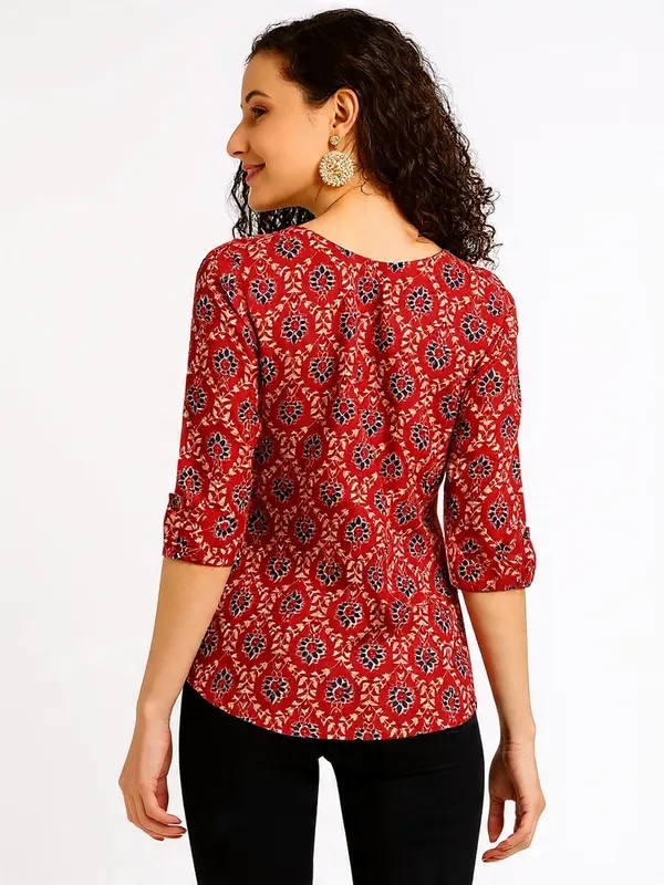 Brown Rayon Slub Casual Daily Wear Top For Women
