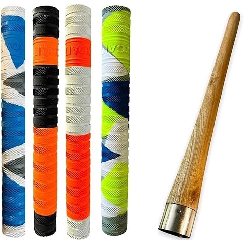 Ring Texture Design Cricket Bat Rubber Grips for Better Shock Absorption Extra Cushioning Soft Touch 4 Grip & 1Cone