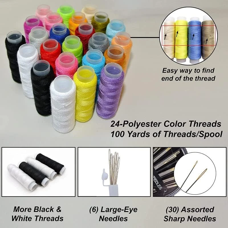 Sewing Kit Box | Tailoring Tools Combo with Accessories, Scissors, Thread, Needles, Measuring Tape | Sui Dhaga Portable, Stitching Items Box for Home, Ladies, Multipurpose, Travel, DIY