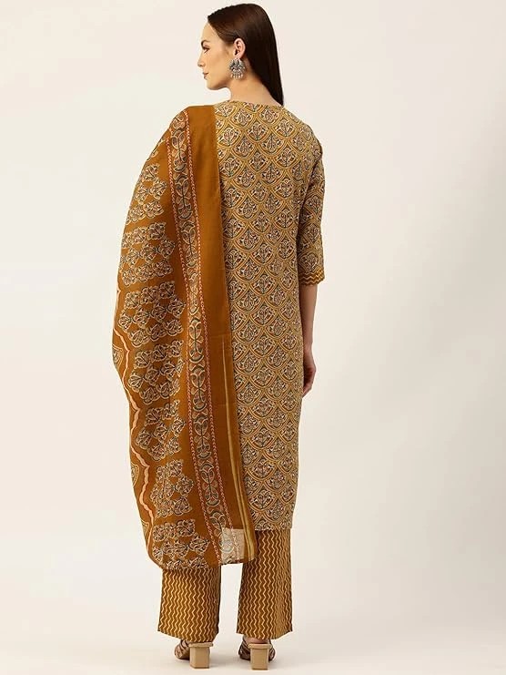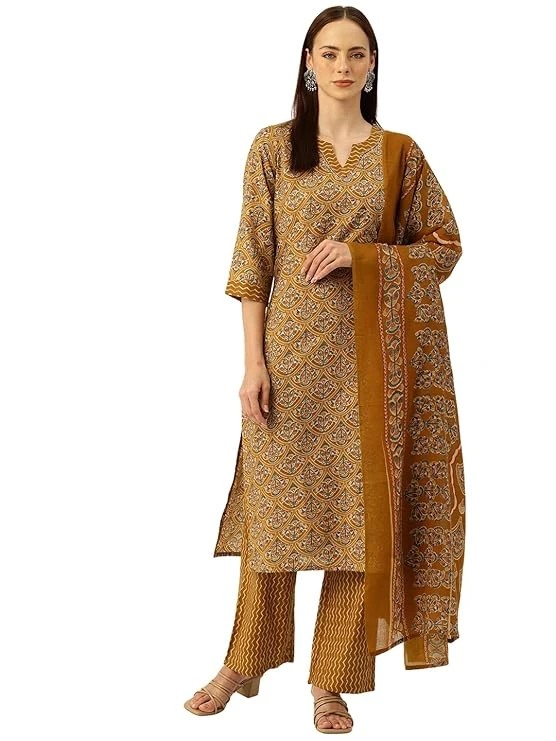 Women's Cotton Printed Anarkali Kurta with Palazzo Pants and Dupatta