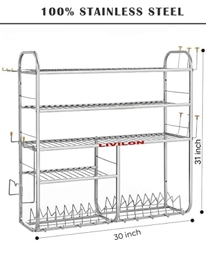 Wall Mount Kitchen Utensils Dish Rack Stainless Steel Utensil Rack/Stand Dish Stand/Holder Utensils Rack with Plate, Bowl & Cutlery (31x30x10 Inches)