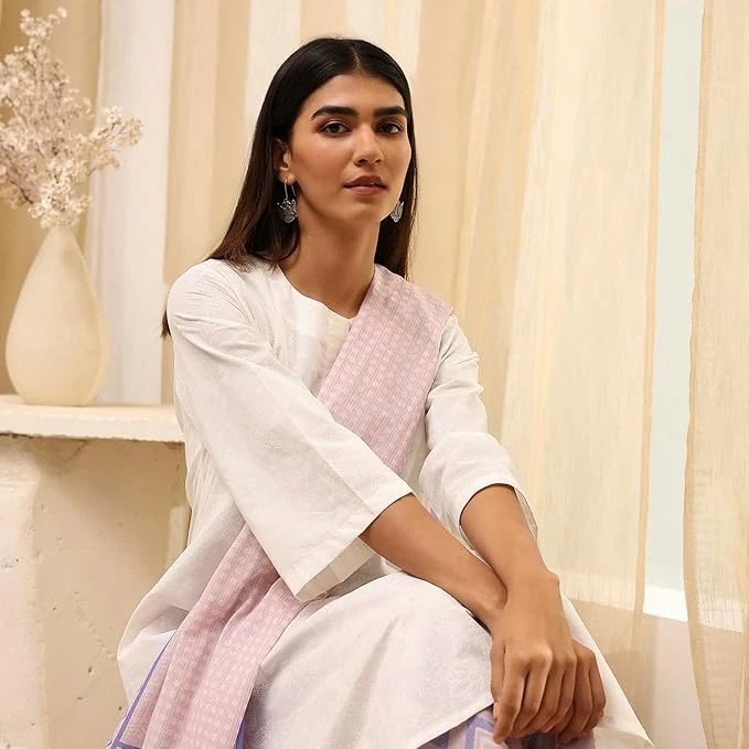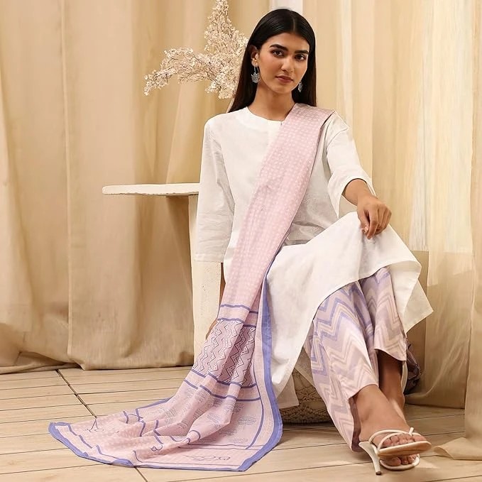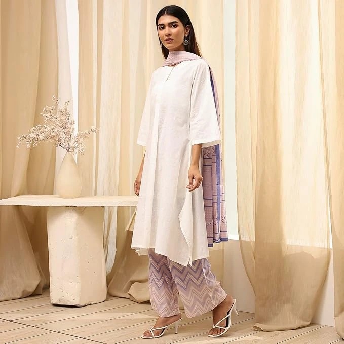 Women's Pure Cotton Printed Straight Kurta Set with Palazzo Pants & Dupatta- Ethnic Wear, White