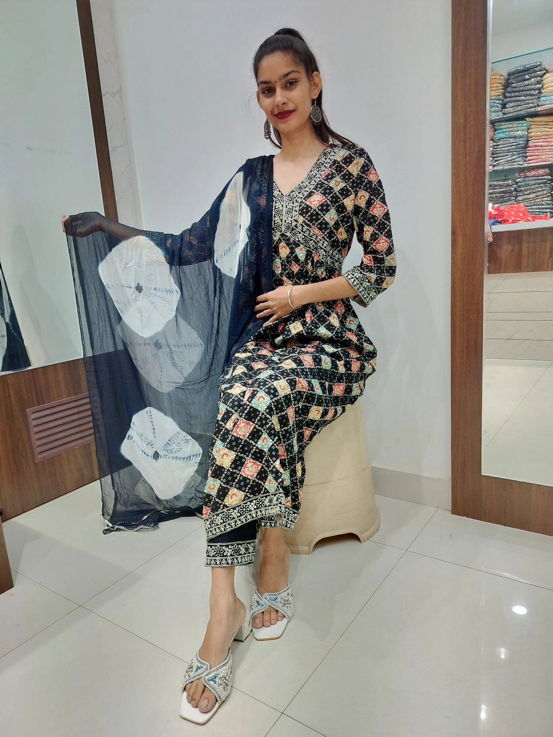 Women's Aliya with anarkali pattern Embroidered Kurta with Pant and Dupatta Set Size Medium Color Multicolor