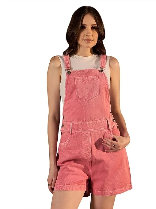 Women's Denim Shorts Dungaree (T shirt not included) Size Medium Color Pink