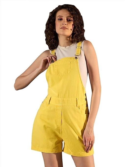 Women's Denim Shorts Dungaree (T shirt not included) Size Medium Color Yellow