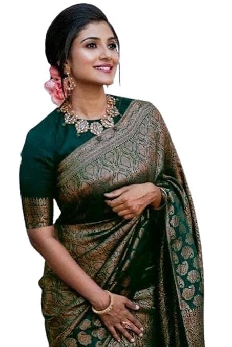 Women's Kanjivaram Art Silk Saree Soft Banarasi Style Sari With Blouse Piece For Wedding Color Dark Green Pack of 1
