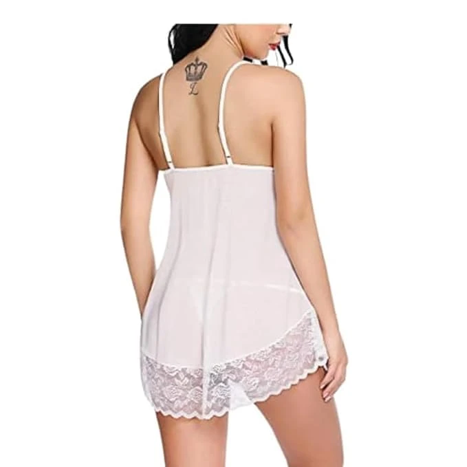 Women's Lace Babydoll Lingerie, Sheer Mesh with Halter Neck, Satin Bow Detail Size Small Color White