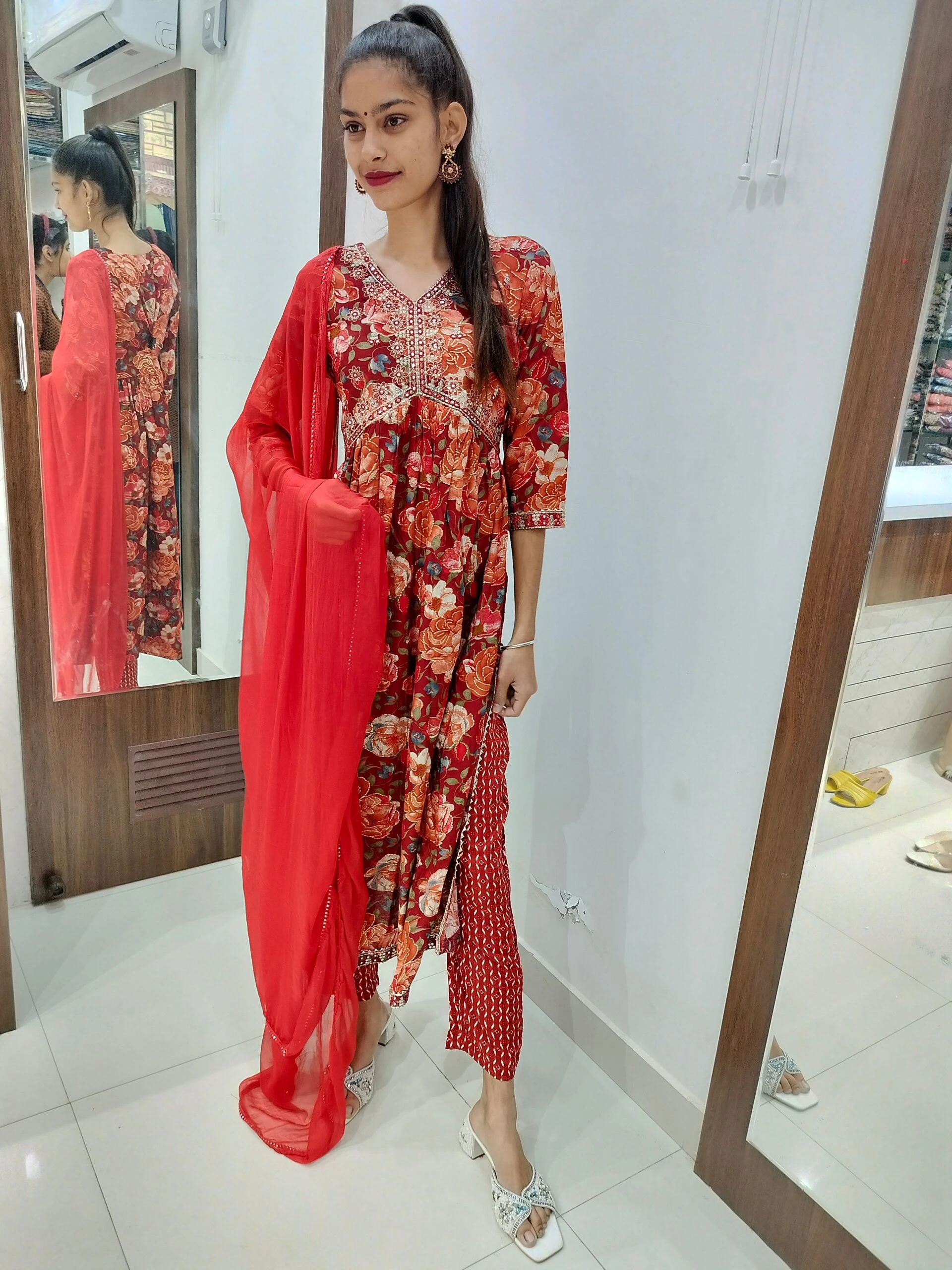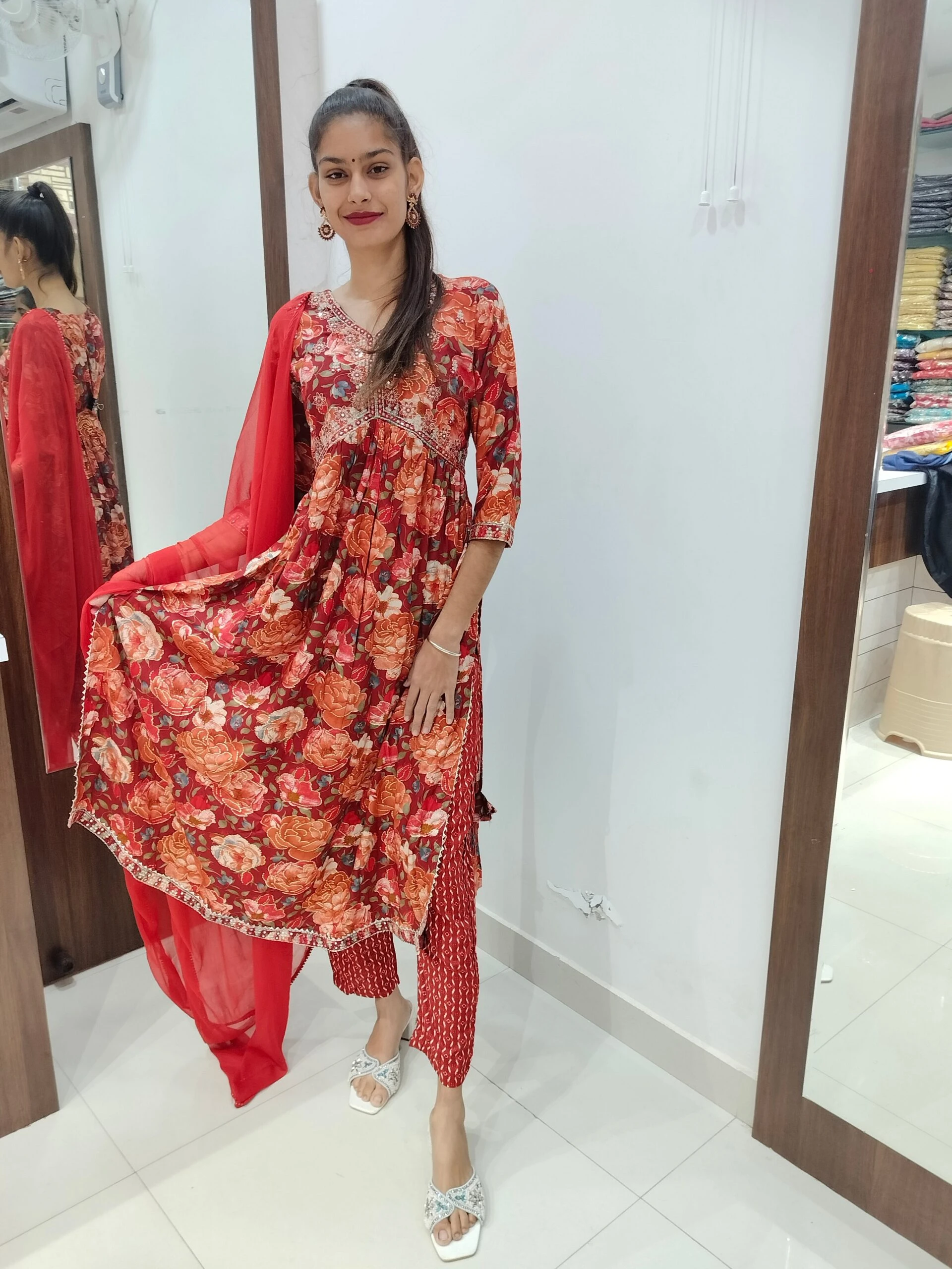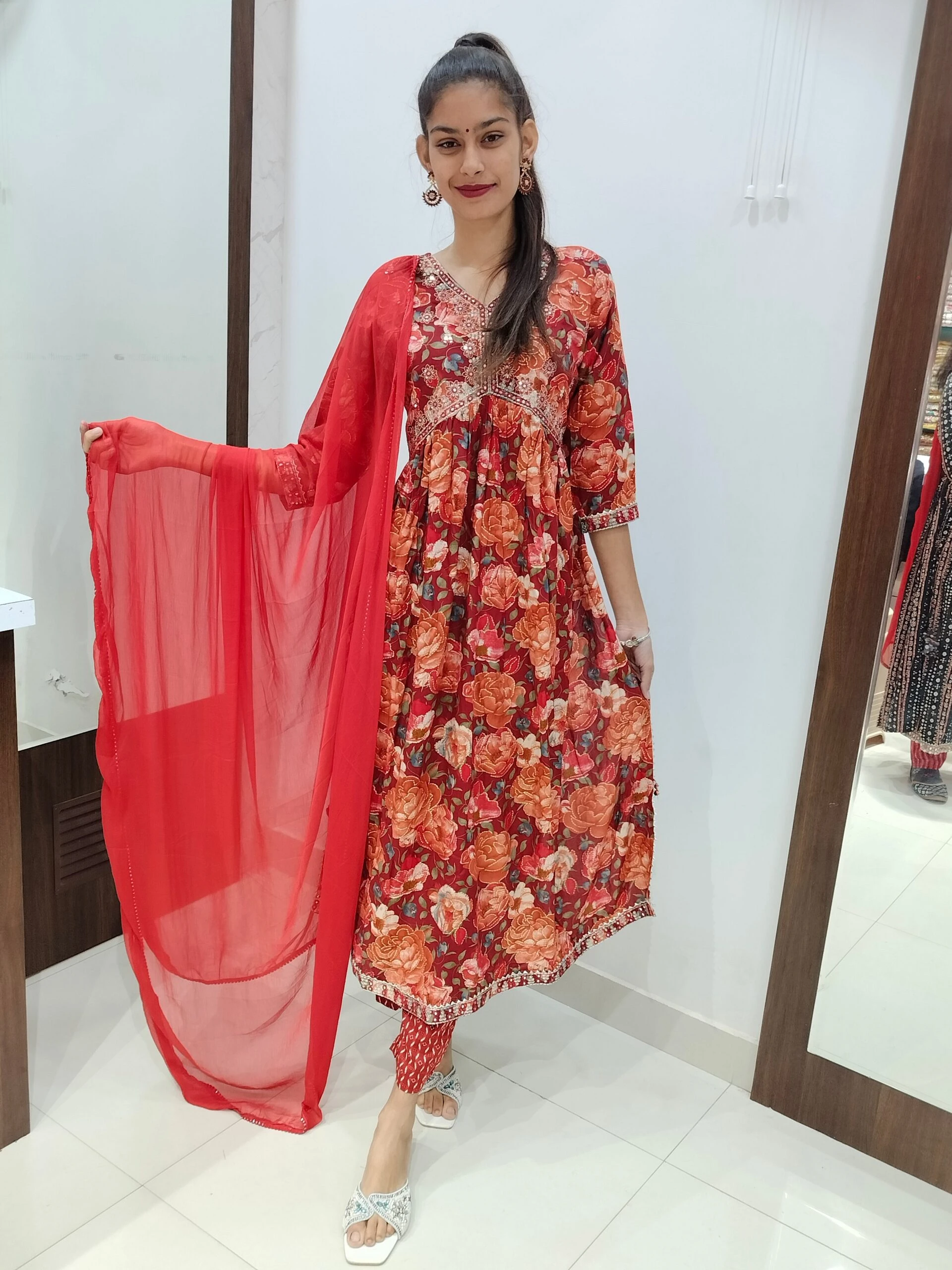 Women's Aliya with anarkali pattern Embroidered Kurta with Pant and Dupatta Set Size Medium Color Multicolor