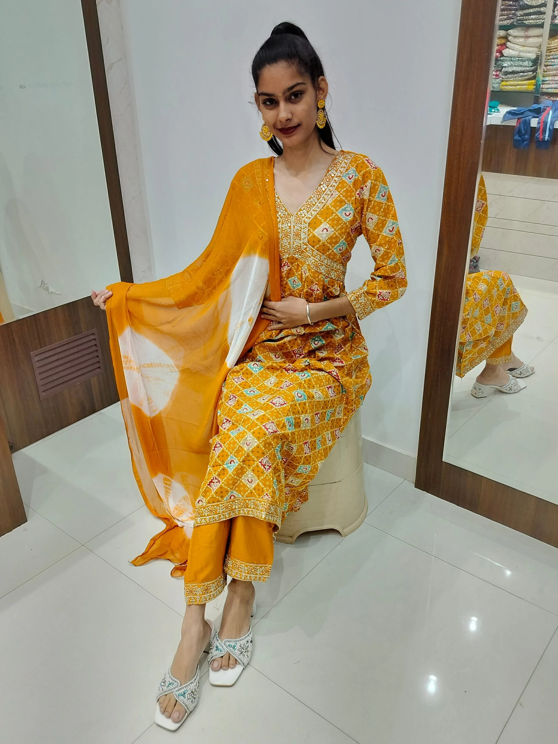 Women's Aliya with anarkali pattern Embroidered Kurta with Pant and Dupatta Set Size Medium Color Multicolor