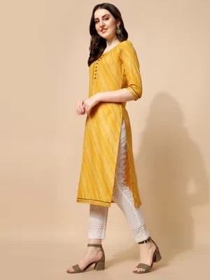 Yellow Cotton Blend Solid Tone Kurta For Women