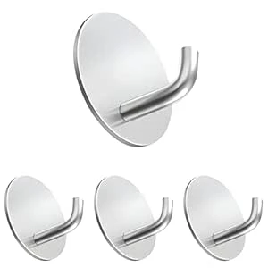 12 Pcs Self-Adhesive Stainless Steel Hooks: Heavy-Duty, Waterproof Wall Hangers for Bathroom and Kitchen - Strong Hold for Coats, | Towels, and More, No Drilling Needed (J Round Silver)