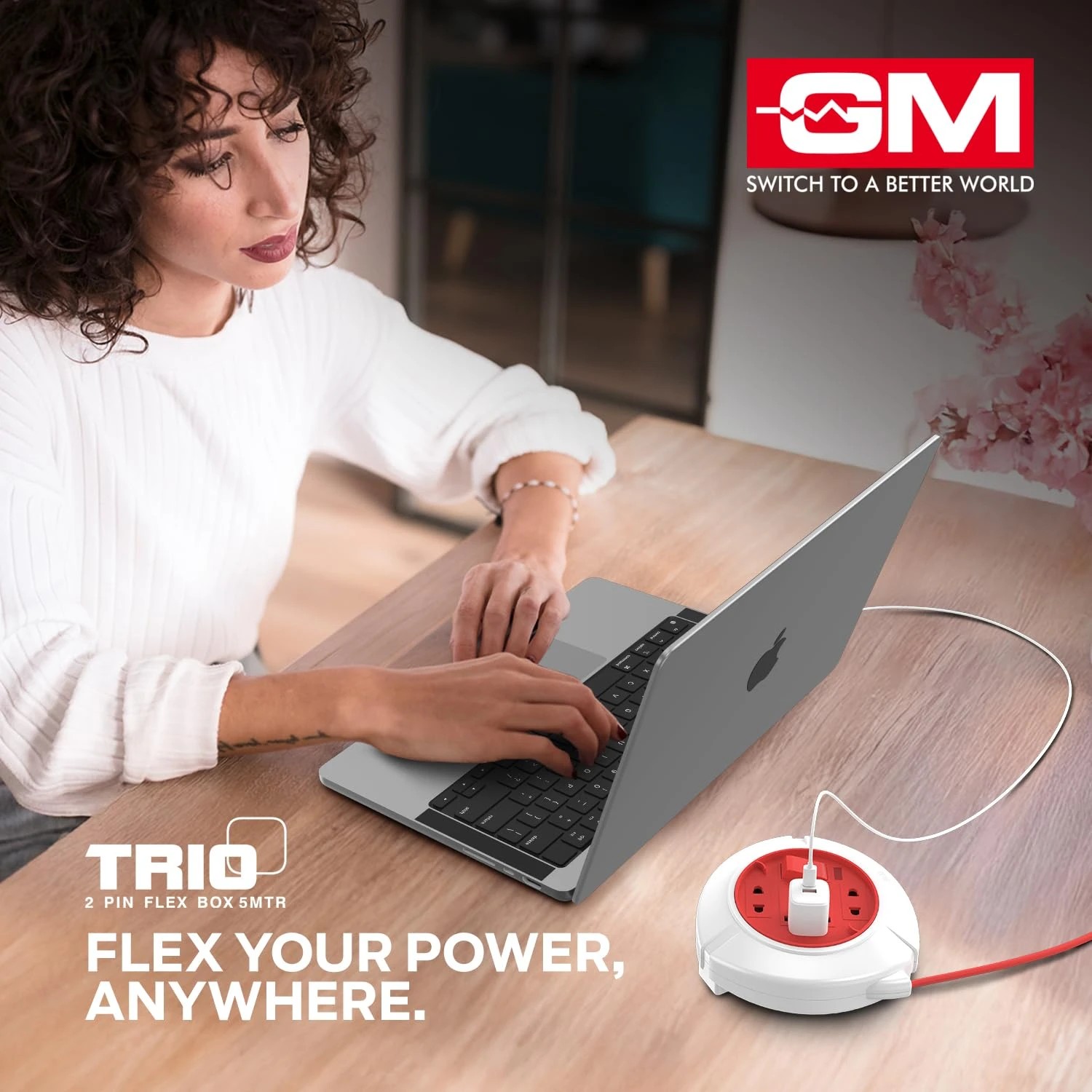 2-Pin Flex Box with 5M Copper Cord | Universal 3-Pin & 2-Pin Sockets | Master Switch, LED Indicator | Safety Sleeve, Cable Guard, Polycarbonate Body | Home & Office Use