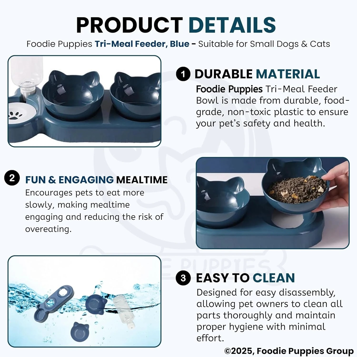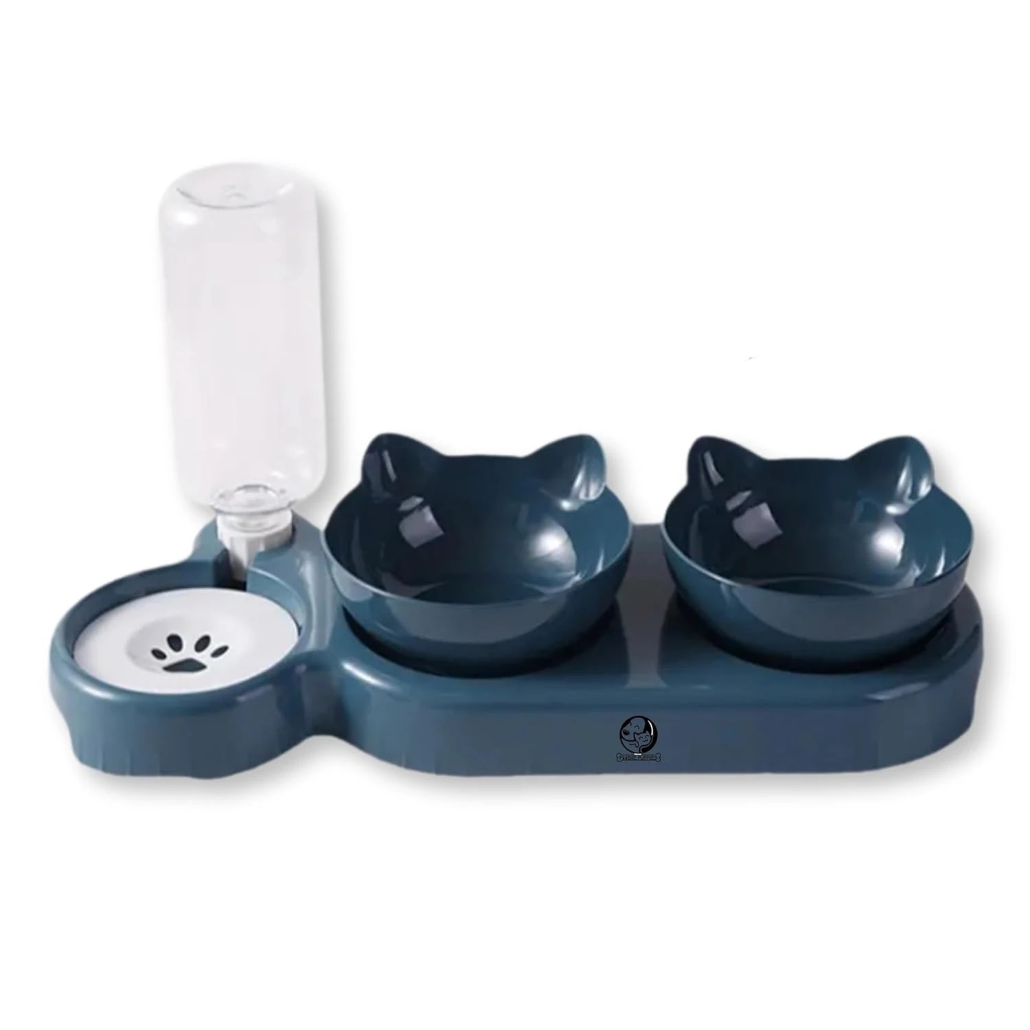 3-in-1 Cat Tri-Meal Feeder Set - (Blue) | 15° Tilted Double Bowl with Automatic Water Dispenser Bottle | Pet Detachable Water and Food Bowl for Puppies, Small Dogs, Cats and Kittens