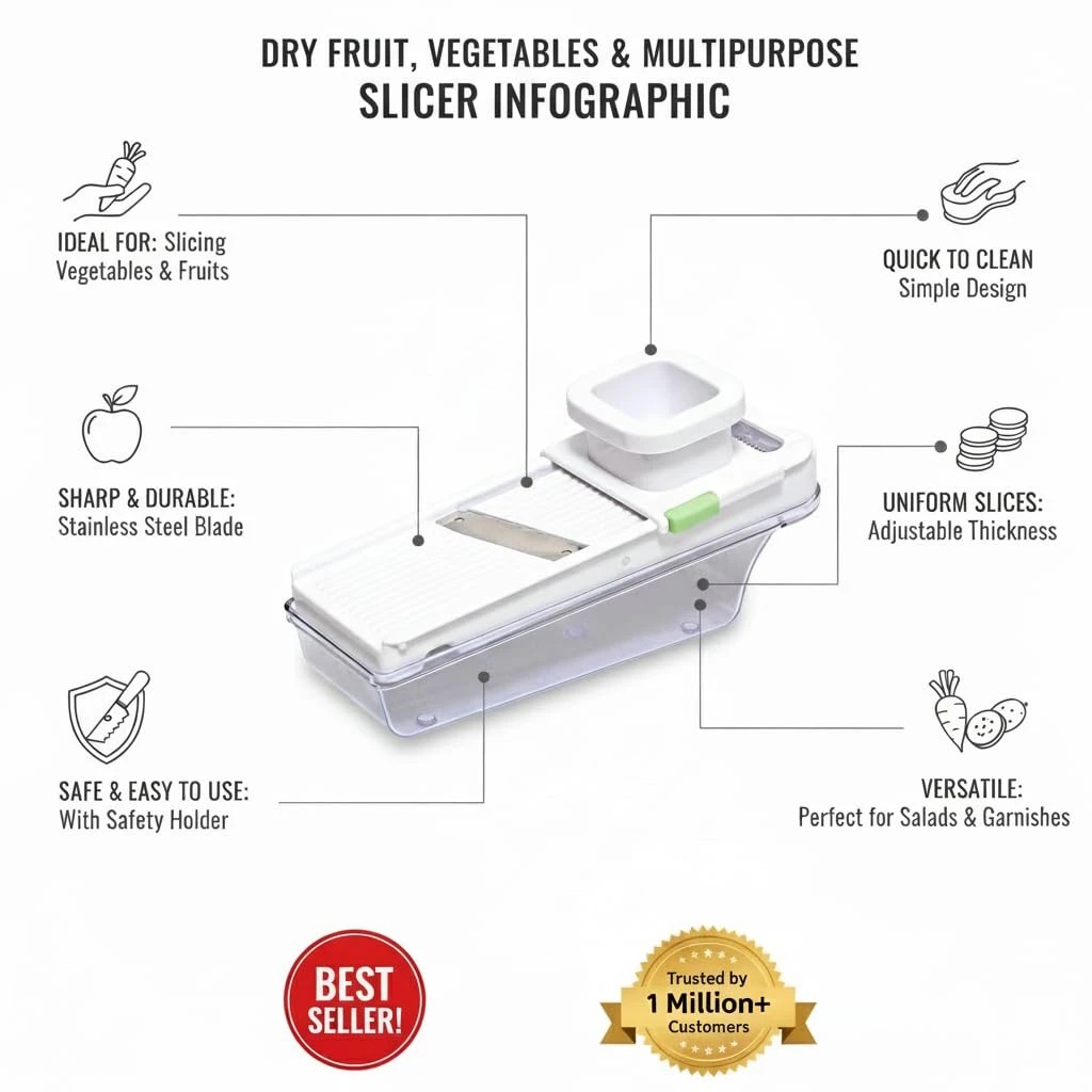 | Special Feature | Compact & portable design with storage container, Ergonomic hand protector for safe slicing & Adjustable Slicing, Ideal for garnishing, meal prep, and festive cooking, Multipurpose design for vegetables, fruits, cheese & dry fruits & Collection Tray Included, Stainless-steel sharp blade for smooth and fast cuttingCompact & portable design with storage container, Ergonomic hand protector for safe slicing & Adjustable Slicing, Ideal for garnishing, meal prep, a… |