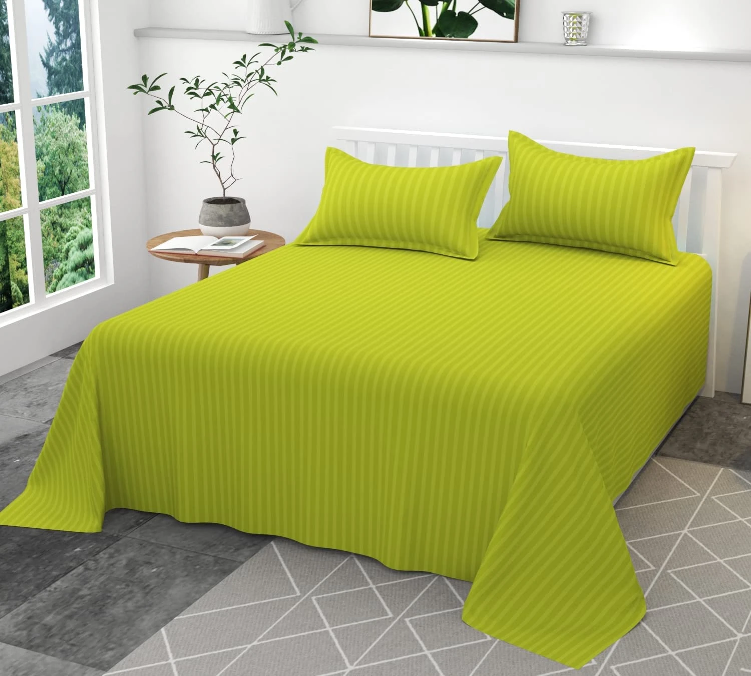 AS Enterprises Stylish and Comfortable Striped Queen Bed Sheet Set Striped Cotton Bedding Set, Queen Size 254x229 cm, 2 Pillow Covers (Light Green) Set of 3