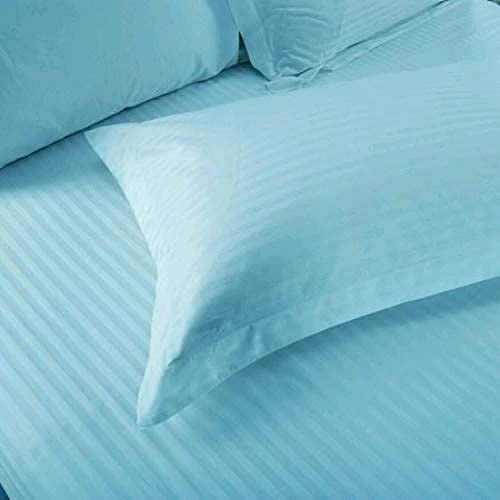 AS Enterprises Stylish and Comfortable Striped Queen Bed Sheet Set Striped Cotton Bedding Set, Queen Size 254x229 cm, 2 Pillow Covers (Sky Blue) Set of 3