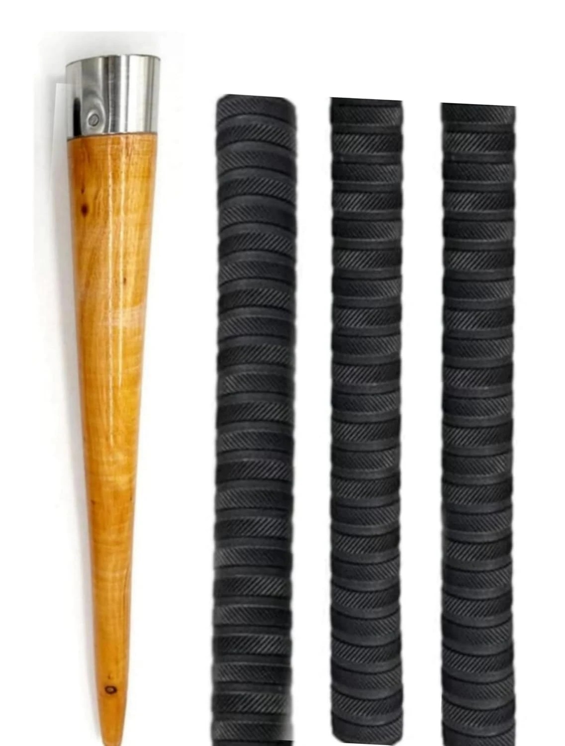 Bat Grip Ergonomic Soft Rubber Grip for Better Cricket Swing | Durable, Bat Grip for All Cricket Players | 3 Black Grip and 1 Wooden Cone