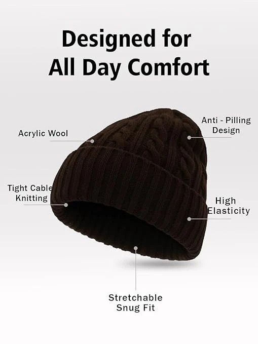 Beanie Cap for Men & Women,Woolen Winter Cap,Unisex Warm Cable Knitted Cap for Men & Women
