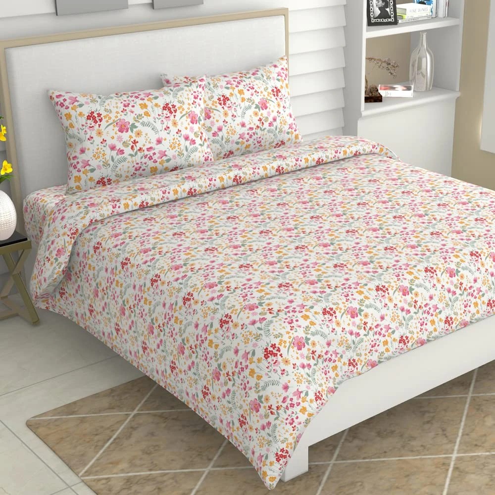 Bedsheet for Double Bed King Size 186 TC Pure Cotton 108x108 Inches Bedsheets for King Size Bed with 2 Pillow Covers -Utopia, Multicolor