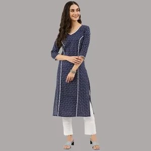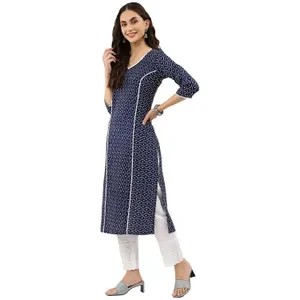 Blue Cotton Blend Kurta For Women