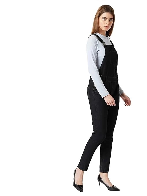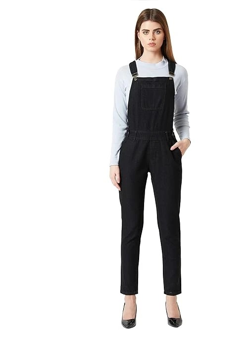 Women's Regular Fit Mid Rise Regular Length Denim Dungaree Size X-Large Color Velvet Black