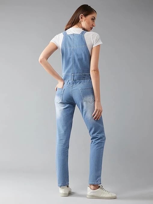 Blue Denim Pinafore Dungaree Dress for Women, Stylish Cotton midi Skirt for Office, Travel, and Casual Occasions, Available in Plus Size Size Medium