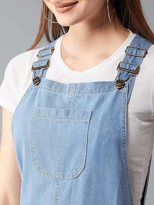 Blue Denim Pinafore Dungaree Dress for Women, Stylish Cotton midi Skirt for Office, Travel, and Casual Occasions, Available in Plus Size