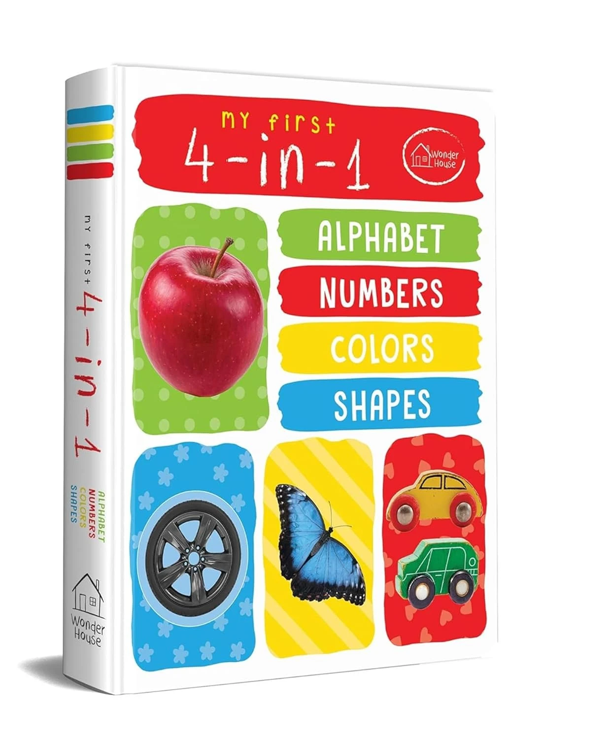 4 in 1: Alphabet, Numbers, Colours, Shapes | Padded Board Book for Kids | Learn ABC, 123, Basic Colours & Shapes with Bright Pictures | Early Learning Book for Babies, Toddlers & Preschoolers | Ages 0–5 Years
