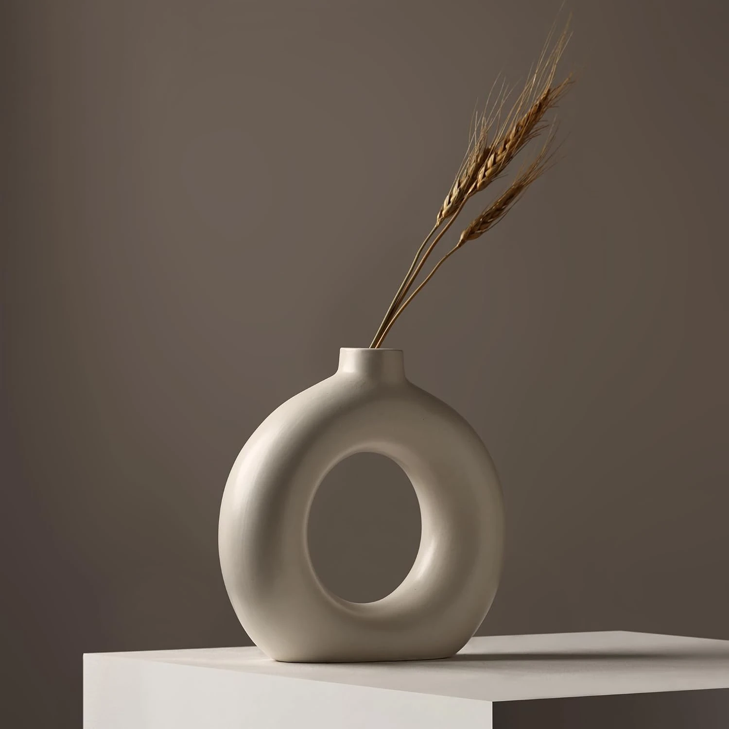 • DESIGN: Unique donut-shaped ceramic vase featuring a hollow centre, perfect as a modern minimalist centrepiece for any space